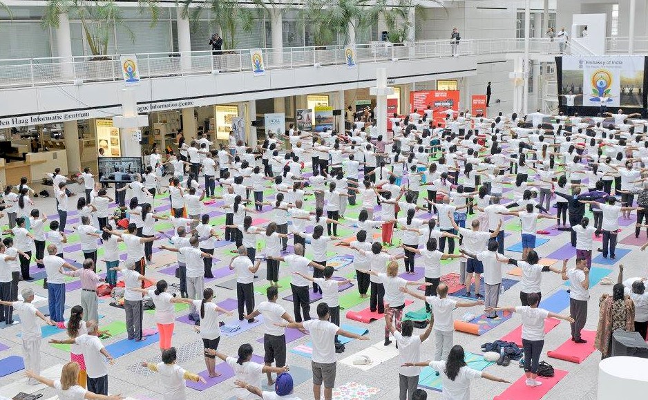Siri Advisory launches the Present from the Future' a wellness movement on the occasion of the 3rd International Day of Yoga. This is movement driven by children to promote awareness in corporates to adapt healthier work practices.The first 'Present', a basket of fruits as a symbol of health was presented by the 'Future' , the children to His Excellency: The Ambassador of India to the Kingdom of Netherlands, Venu Rajamony.